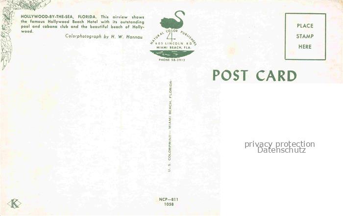 74128729 Hollywood-by-the-Sea Florida USA Hollywood Beach Hotel aerial view postalisch nicht gelaufen Fliegeraufnahme Erhaltung siehe scans [FriedD77] KatCode: 14140110000000