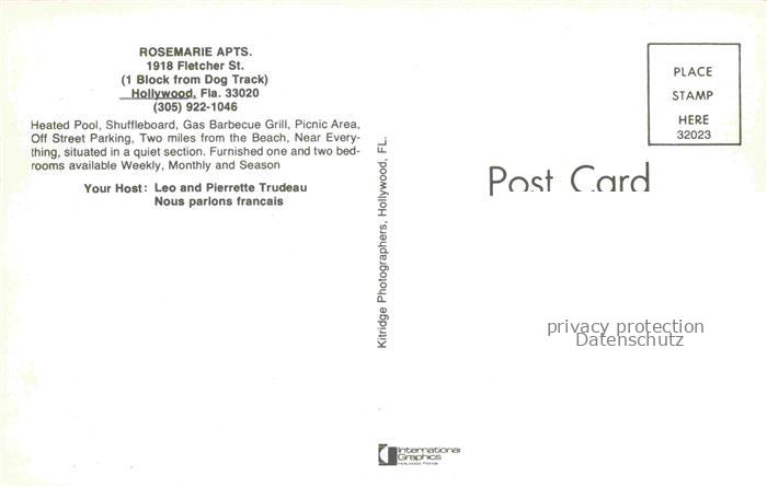 74022824 Hollywood-by-the-Sea Florida USA Rosemarie Appartments Swimming Pool postalisch nicht gelaufen Erhaltung siehe scans [FriedD77] KatCode: 14140110000000