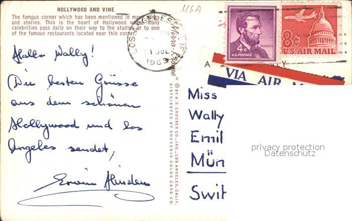 72602775 old postcard Hollywood California and Vine postalisch gelaufen Erhaltung siehe scans [FriedD77] KatCode: 14140