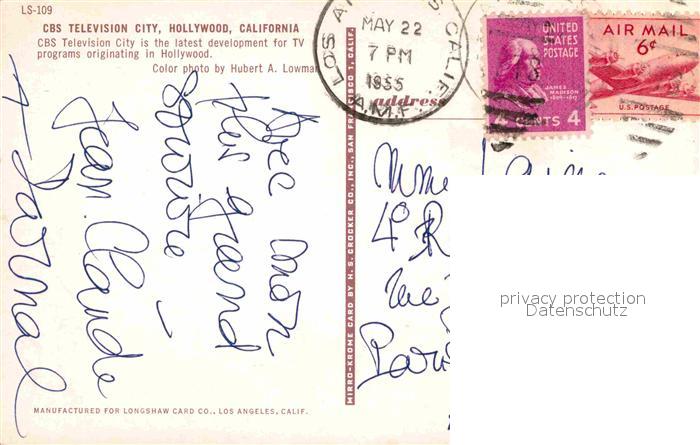 72689752 old postcard Hollywood California CBS Television City Flag postalisch gelaufen Erhaltung siehe scans [FriedD77] KatCode: 14140