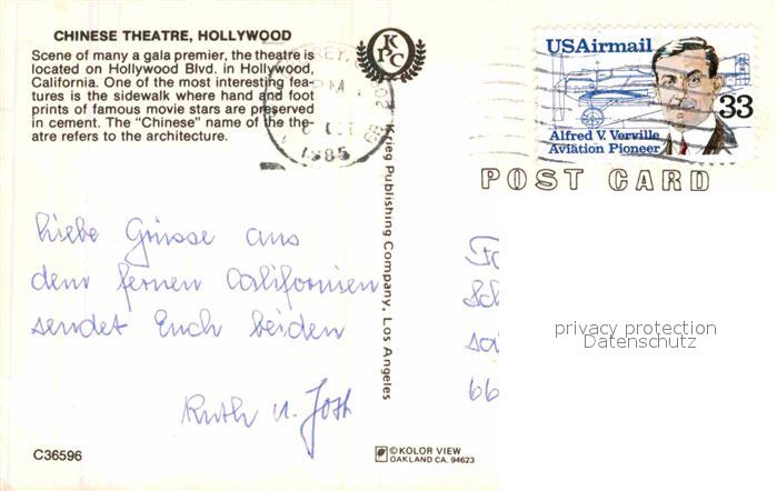 72633985 old postcard Hollywood California Chinese Theatre postalisch gelaufen Erhaltung siehe scans [WerneD78] KatCode: 14140