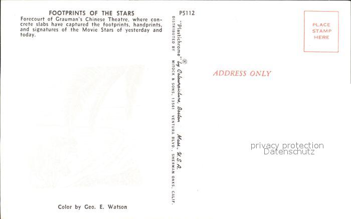 72308866 Hollywood California Footprints of the Stars Forecourt of Graumans Chinese Theatre postalisch nicht gelaufen Erhaltung siehe scans KatCode: 14140