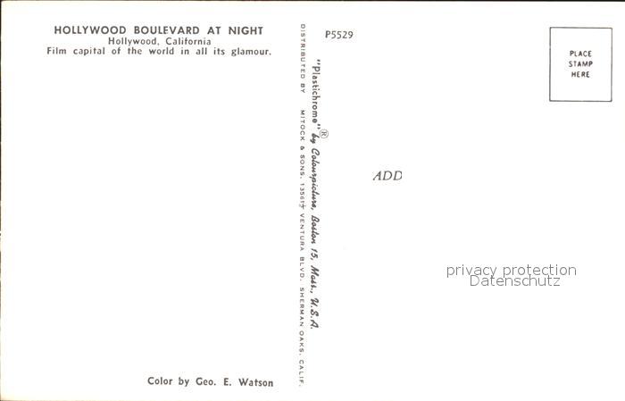72308861 Hollywood California Hollywood Boulevard at night postalisch nicht gelaufen Erhaltung siehe scans KatCode: 14140