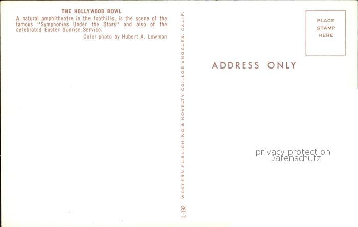 72461512 Hollywood California Hollywood Bowl Amphitheatre Foothills postalisch nicht gelaufen Erhaltung siehe scans KatCode: 14140