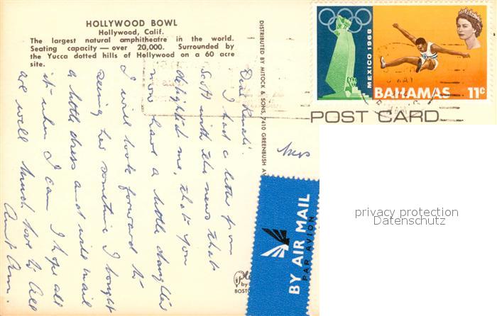 73146136 old postcard Hollywood California Hollywood Bowl postalisch gelaufen Erhaltung siehe scans [NatalD47] KatCode: 14140