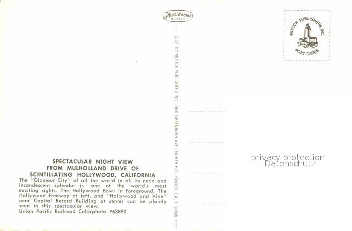 72639087 Hollywood California Night view from Mulholland Drive postalisch nicht gelaufen Erhaltung siehe scans [WerneD78] KatCode: 14140