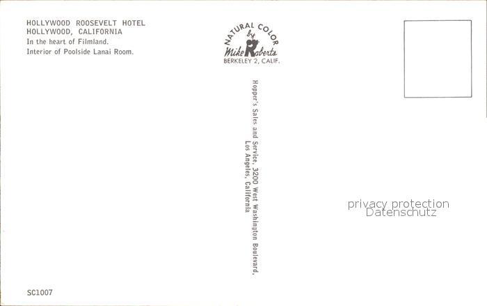72393404 Hollywood California Roosevelt Hotel Poolside Lanai Room postalisch nicht gelaufen Erhaltung siehe scans KatCode: 14140