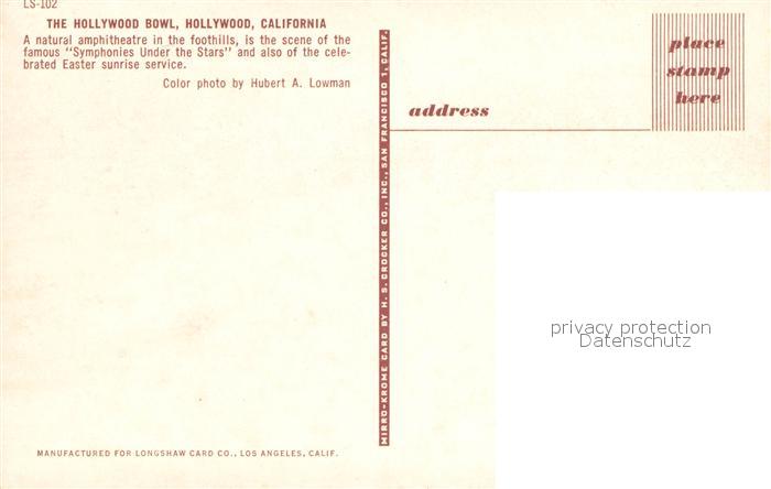 72947275 Hollywood California The Hollywood Bowl postalisch nicht gelaufen Erhaltung siehe scans [WerneD78] KatCode: 14140