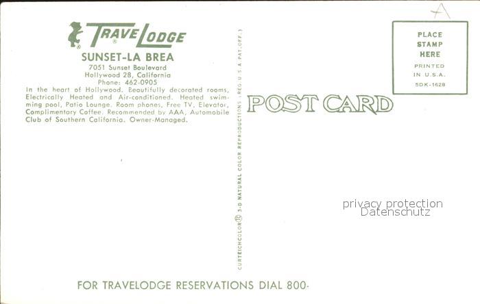 72486942 Hollywood California Travel Lodge Sunset La Brea postalisch nicht gelaufen Erhaltung siehe scans KatCode: 14140