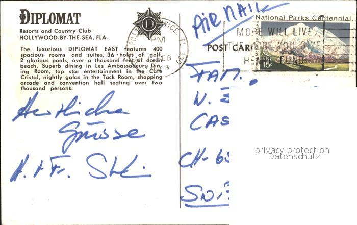 71969128 old postcard Hollywood Florida Diplomat Resorts Country Club postalisch gelaufen Erhaltung siehe scans KatCode: 14140110000000