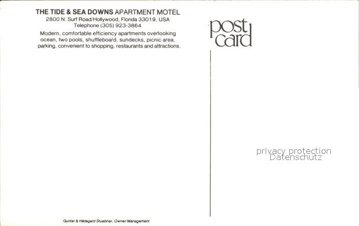 72124554 Hollywood Florida The Tide and See Downs Apartment Motel postalisch nicht gelaufen Erhaltung siehe scans KatCode: 14140110000000