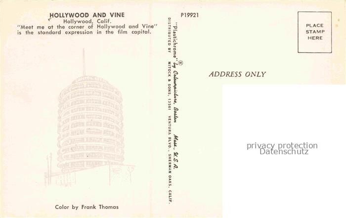 14104250 HOLLYWOOD Los Angeles California USA Corner of Hollywood and Vine at night postalisch nicht gelaufen Erhaltung siehe scans [FriedD77] KatCode: 14140050000000