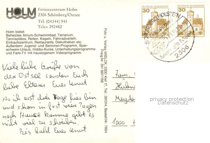 73169668 alte Postkarte Holm Holstein Ferienzentrum an der Ostsee Fliegeraufnahme postalisch gelaufen Erhaltung siehe scans [FriedD77] KatCode: 11110001057073