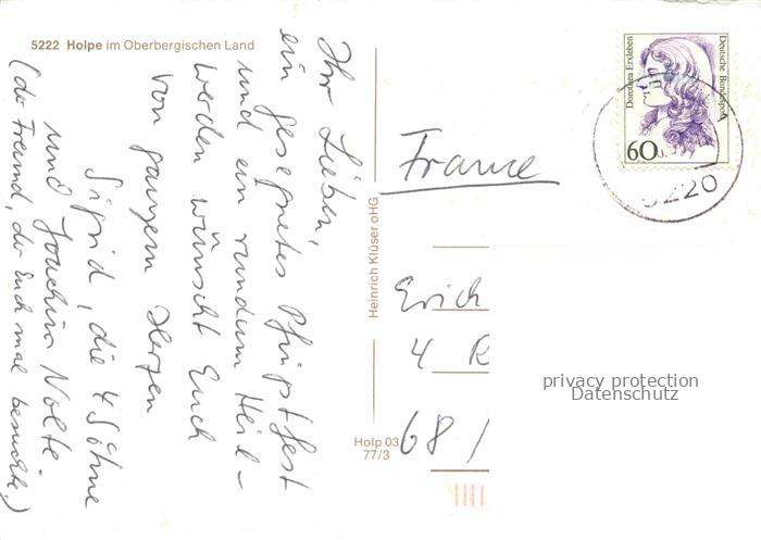 74088423 alte Postkarte Holpe Koeln NRW Panorama Oberbergisches Land Kirchen postalisch gelaufen Erhaltung siehe scans [FriedD77] KatCode: 11110005315000