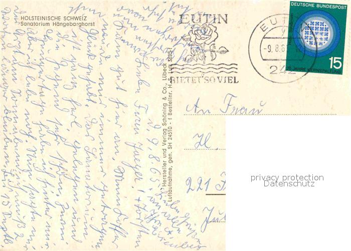 72714715 alte Postkarte Holsteinische Schweiz Sanatorium Haengebarghorst Fliegeraufnahme postalisch gelaufen Erhaltung siehe scans [FriedD77] KatCode: 11110