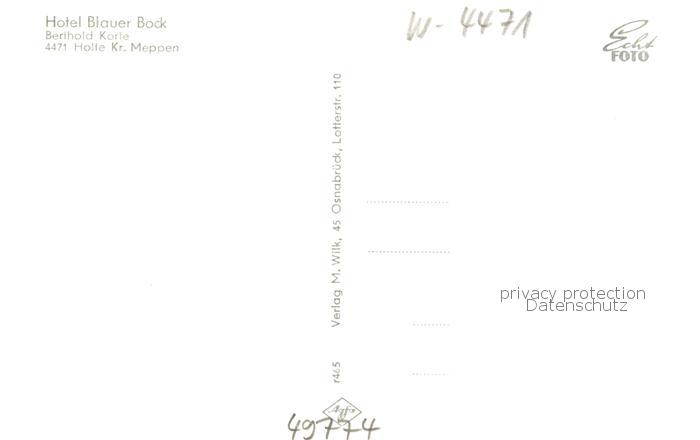 73803085 Holte Meppen Hotel Blauer Bock postalisch nicht gelaufen Erhaltung siehe scans [FriedD77] Frie Katcode 11110003454035