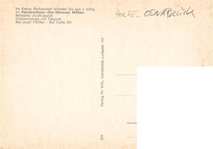 73886098 Holte Osnabrueck Ausflugslokal Zur Huevener Muehle Gartenanlage mit Tierpark postalisch nicht gelaufen Erhaltung siehe scans [FriedD77] KatCode: 11110003459012