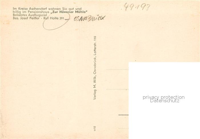 73858321 Holte Osnabrueck Huevener Muehle im Emsland Gaststaette Gesellschaftssaal postalisch nicht gelaufen Erhaltung siehe scans [FriedD77] KatCode: 11110003459012