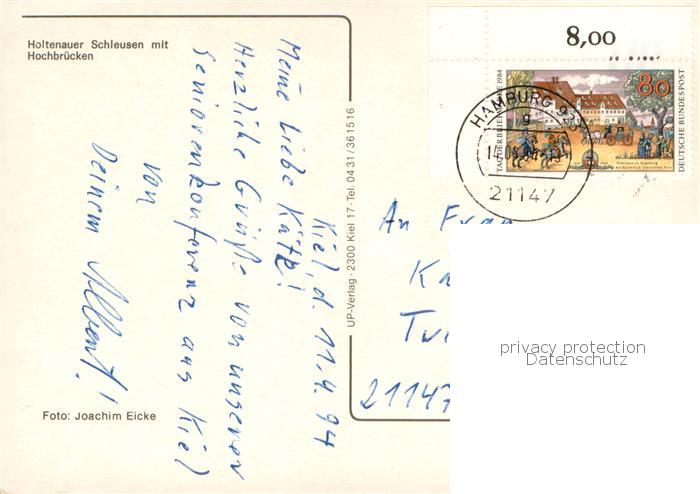 73785072 alte Postkarte Holtenau Kiel Fliegeraufnahme Holtenauer Schleusen m. Hochbruecken postalisch gelaufen Erhaltung siehe scans [LiesaD40] KatCode: 11110001002000
