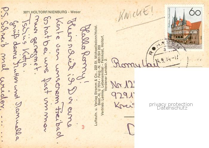 73761203 alte Postkarte Holtorf Weser Fliegeraufnahme postalisch gelaufen Erhaltung siehe scans [WerneD78] KatCode: 11110003256022