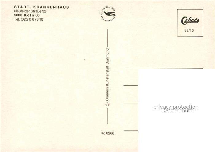 73088361 Holweide Krankenhaus postalisch nicht gelaufen Erhaltung siehe scans [PaolaD17] KatCode: 11110005315000