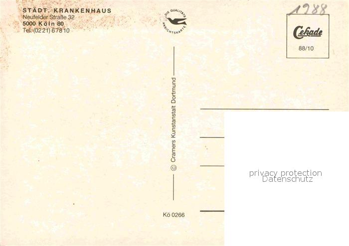 72887333 Holweide Krankenhaus postalisch nicht gelaufen Erhaltung siehe scans [LiesaD40] KatCode: 11110005315000