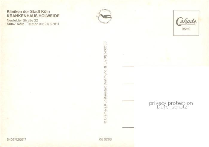 73542842 Holweide Krankenhaus postalisch nicht gelaufen Erhaltung siehe scans [FriedD77] KatCode: 11110005315000