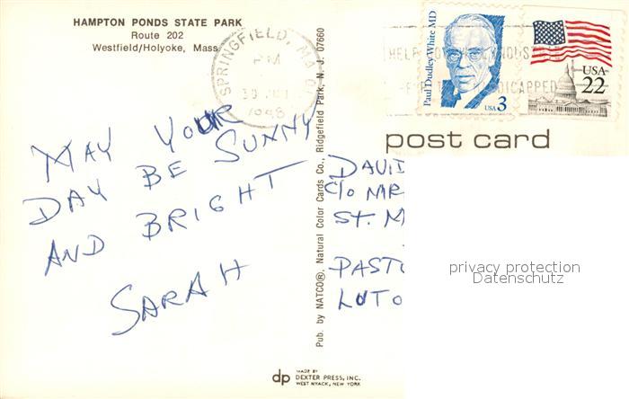 73130378 old postcard Holyoke Massachusetts Hampton Ponds State Park postalisch gelaufen Erhaltung siehe scans [NatalD47] KatCode: 14140230000000