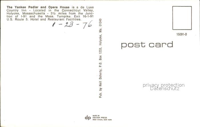 72285081 Holyoke Massachusetts Yankee Pedlar and Opera House postalisch nicht gelaufen Erhaltung siehe scans KatCode: 14140230000000