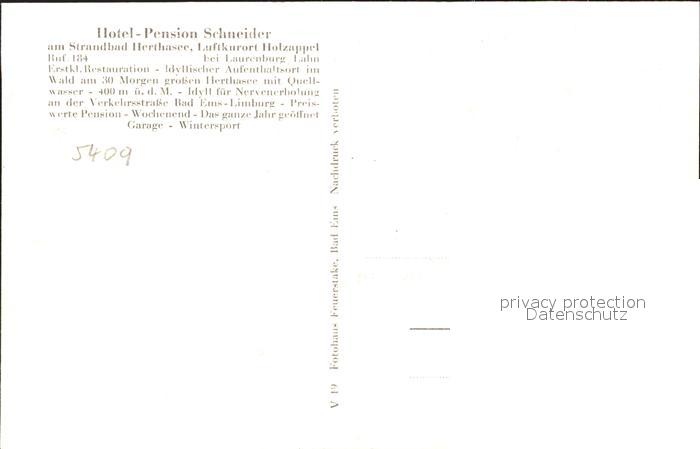 31721727 Holzappel Hotel Pension Schneider am Harthasee Baden postalisch nicht gelaufen Erhaltung siehe scans KatCode: 11110007141059
