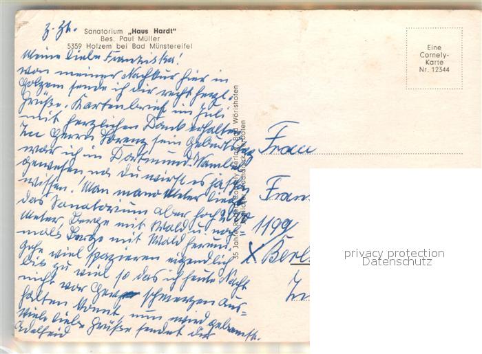 43369321 Holzem Eifel Sanatorium Haus Hardt Garten Pavillon Cornely Karte Nr 12344 postalisch nicht gelaufen Erhaltung siehe scans [FriedD77] KatCode: 11110005366004