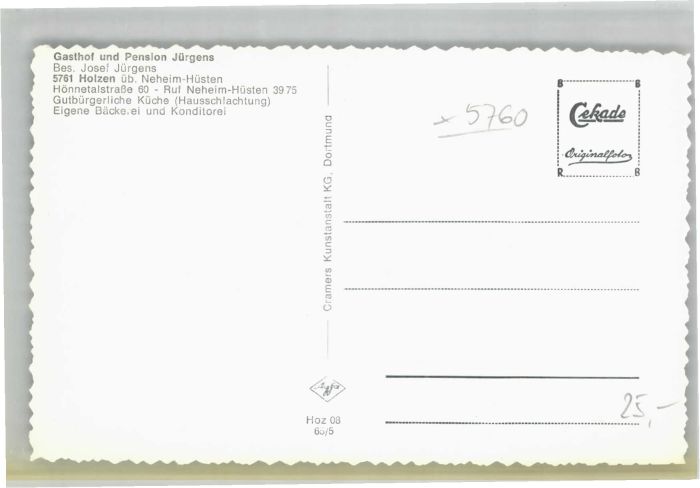 40683909 Holzen Neheim-Huesten asthof Pension Jürgens * KatCode 11110005958004
