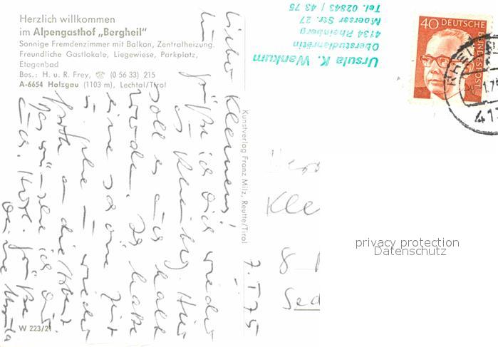 72849237 alte Postkarte Holzgau Alpengasthof Bergheil Winter postalisch gelaufen Erhaltung siehe scans [KathaD81] KatCode: 11390331070817