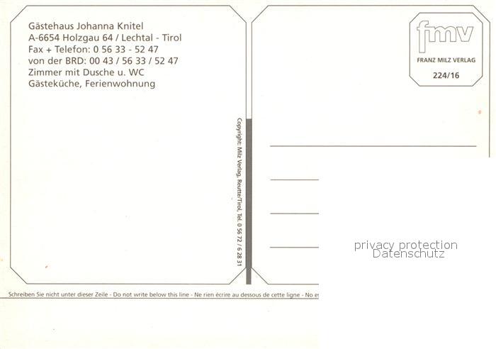 13010000 Holzgau Gaestehaus Johanna Knitel postalisch nicht gelaufen Erhaltung siehe scans [NatalD47] KatCode: 11390331070817