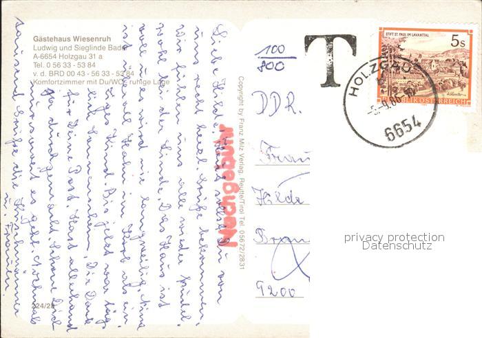 72305799 alte Postkarte Holzgau Gaestehaus Wiesenruh Zimmer Gaststube postalisch gelaufen Erhaltung siehe scans KatCode: 11390331070817