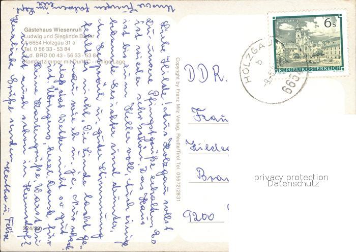 72306543 alte Postkarte Holzgau Gaestehaus Wiesenruh Zimmer Gaststube postalisch gelaufen Erhaltung siehe scans KatCode: 11390331070817