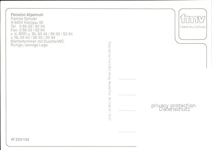72531372 Holzgau Pension Alpenruh postalisch nicht gelaufen Erhaltung siehe scans [AndreD76 kt113box] KatCode: 11390331070817