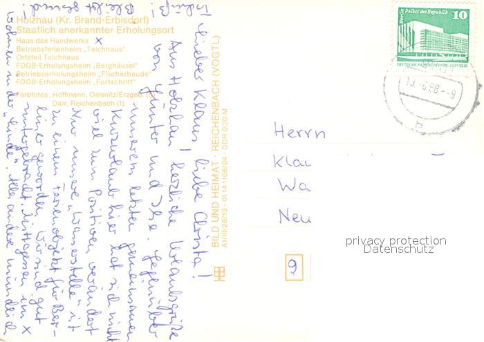 73108116 alte Postkarte Holzhau Brand-Erbisdorf Haus des Handwerke Erholungsheim Berghaeuser Fortschritt postalisch gelaufen Erhaltung siehe scans [NatalD47] KatCode: 11110014177030