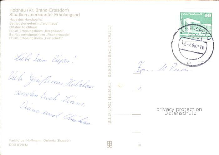 72543064 alte Postkarte Holzhau Brand-Erbisdorf Haus des Handwerks Teichaus FDGB Erholungsheime postalisch gelaufen Erhaltung siehe scans [KathaD75 kv015box] KatCode: 11110014177030