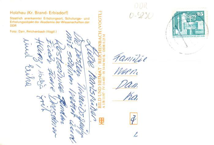 73947310 alte Postkarte Holzhau Brand-Erbisdorf Schulungs und Erholungsobjekt der Akademie der Wissenschaften der DDR postalisch gelaufen Erhaltung siehe scans [WerneD78] KatCode: 11110014177030