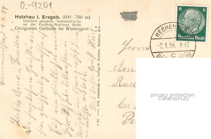73708833 alte Postkarte Holzhau Rechenberg-Bienenmuehle Erzgebirge Im Schnee postalisch gelaufen Erhaltung siehe scans [LiesaD40] KatCode: 11110014177350