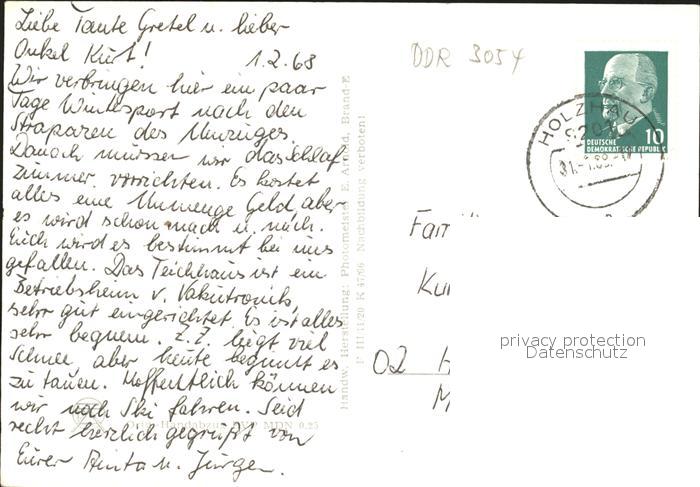 72082834 alte Postkarte Holzhau Rechenberg-Bienenmuehle Teichhaus postalisch gelaufen Erhaltung siehe scans KatCode: 11110014177350