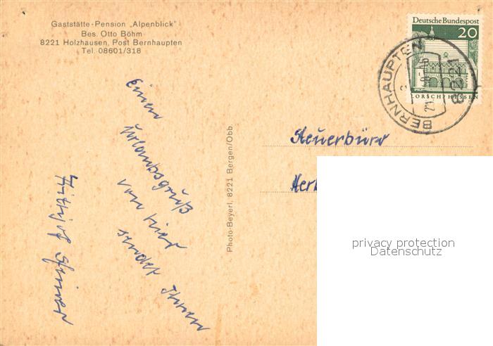 73720972 alte Postkarte Holzhausen Bernhaupten Gaststaette Alpenblick Gaststube Terrasse Panorama postalisch gelaufen Erhaltung siehe scans [WerneD78] KatCode: 11110009189113