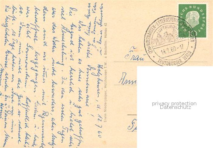 73165508 alte Postkarte Holzhausen-Externsteine Landschaftspanorama Hirsch Hermannsdenkmal Teutoburger Wald Fliegeraufnahme postalisch gelaufen Erhaltung siehe scans [FriedD77] KatCode: 11110005766032