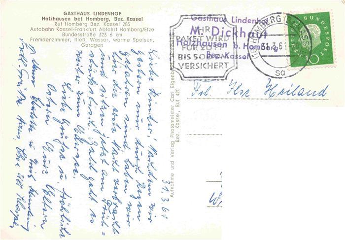 73974940 alte Postkarte Holzhausen Homberg Fliegeraufnahme Gasthaus Lindenhof Gaststube postalisch gelaufen Erhaltung siehe scans [WerneD78] KatCode: 11110006634009