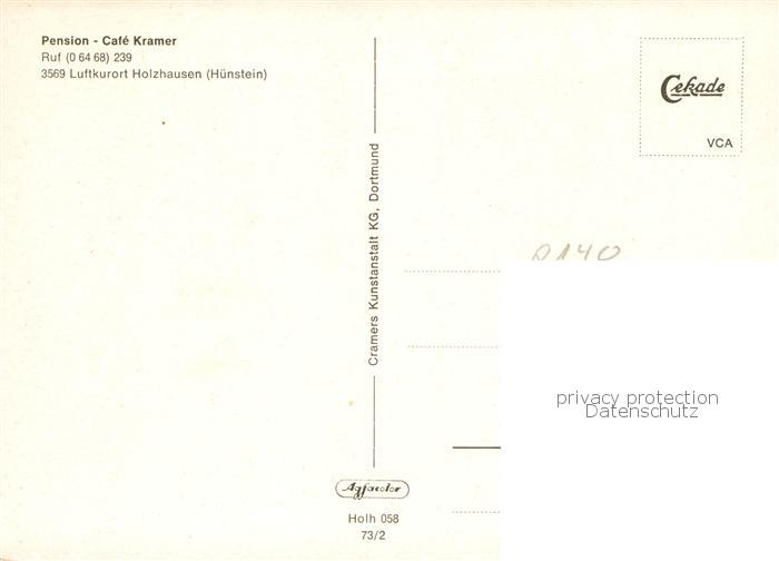 73833440 Holzhausen Huenstein Pension Cafe Kramer postalisch nicht gelaufen Erhaltung siehe scans [WerneD78] KatCode: 11110006534007