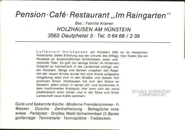 71831801 Holzhausen Huenstein Pension Im Raingarten Teilansicht postalisch nicht gelaufen Keine Postkarte (siehe scan) Erhaltung siehe scans KatCode: 11110006534007