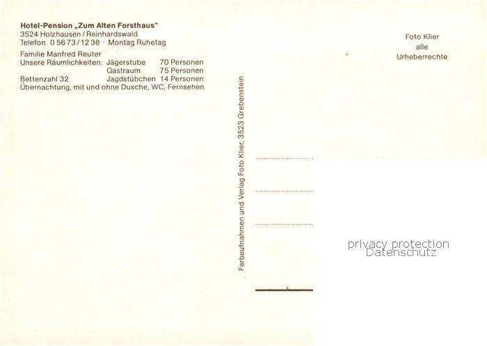 73844669 Holzhausen Reinhardswald Hotel Pension Zum Alten Forsthaus Gastraeume Gaestezimmer postalisch nicht gelaufen Erhaltung siehe scans [FriedD77] KatCode: 11110006633014