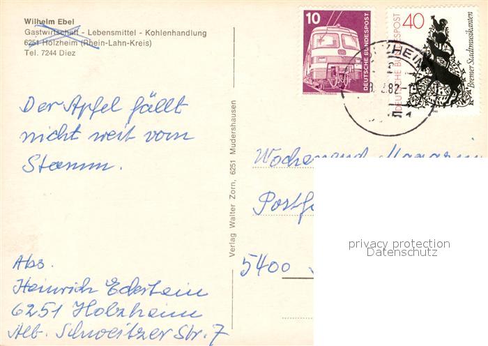 73516621 alte Postkarte Holzheim Rhein-Lahn-Kreis Panorama Burgruine postalisch gelaufen Erhaltung siehe scans [FriedD77] KatCode: 11110007141061