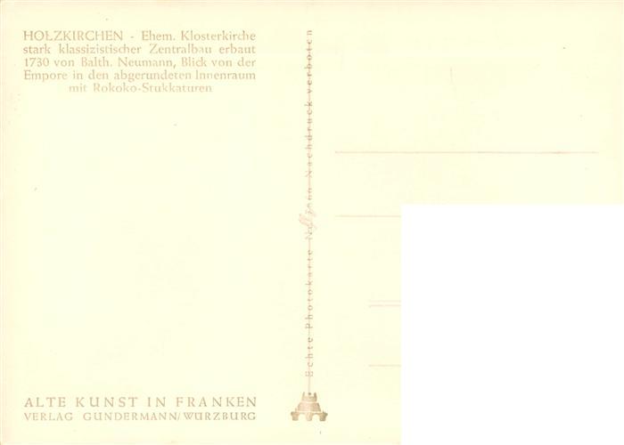 73901914 Holzkirchen Unterfranken Ehemalige Klosterkirche Blick von der Empore Rokoko-Stukkaturen Serie Alte Kunst in Franken postalisch nicht gelaufen Erhaltung siehe scans [FriedD77] KatCode: 11110009679149